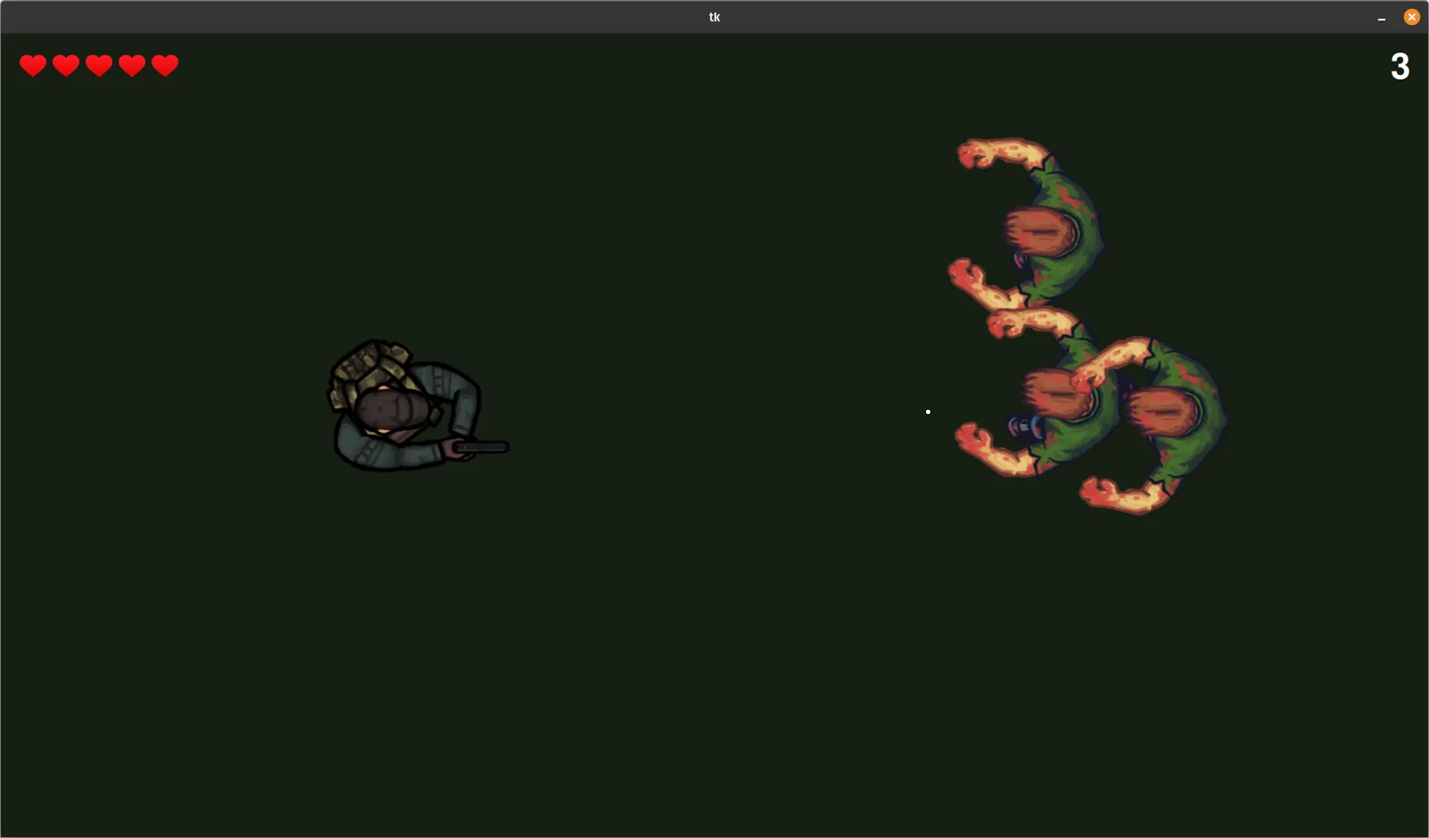 A top-down zombie shooter game I made for a Python coursework in university, featuring auto-save, a leaderboard, a "boss key" to quickly replace the screen with an Excel spreadsheet, and cheat codes.