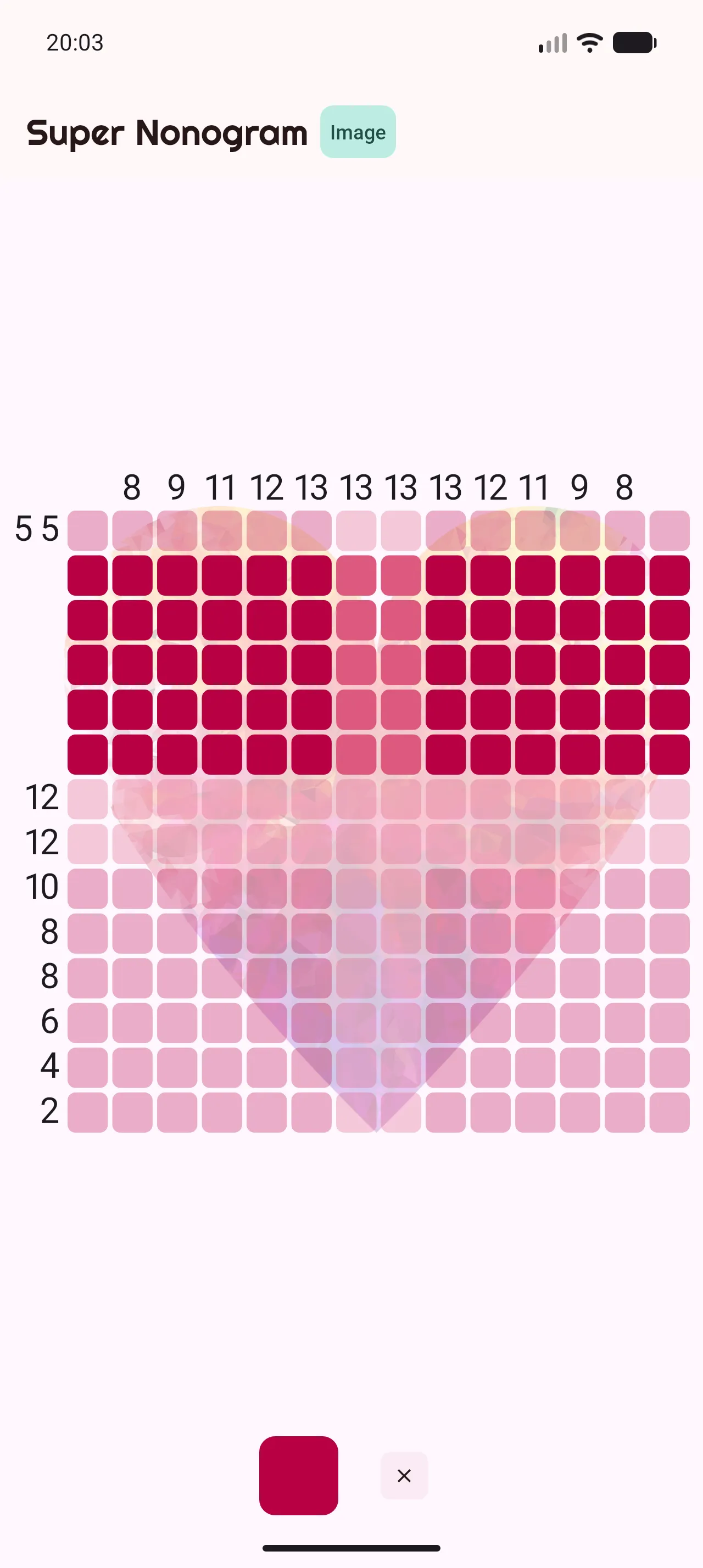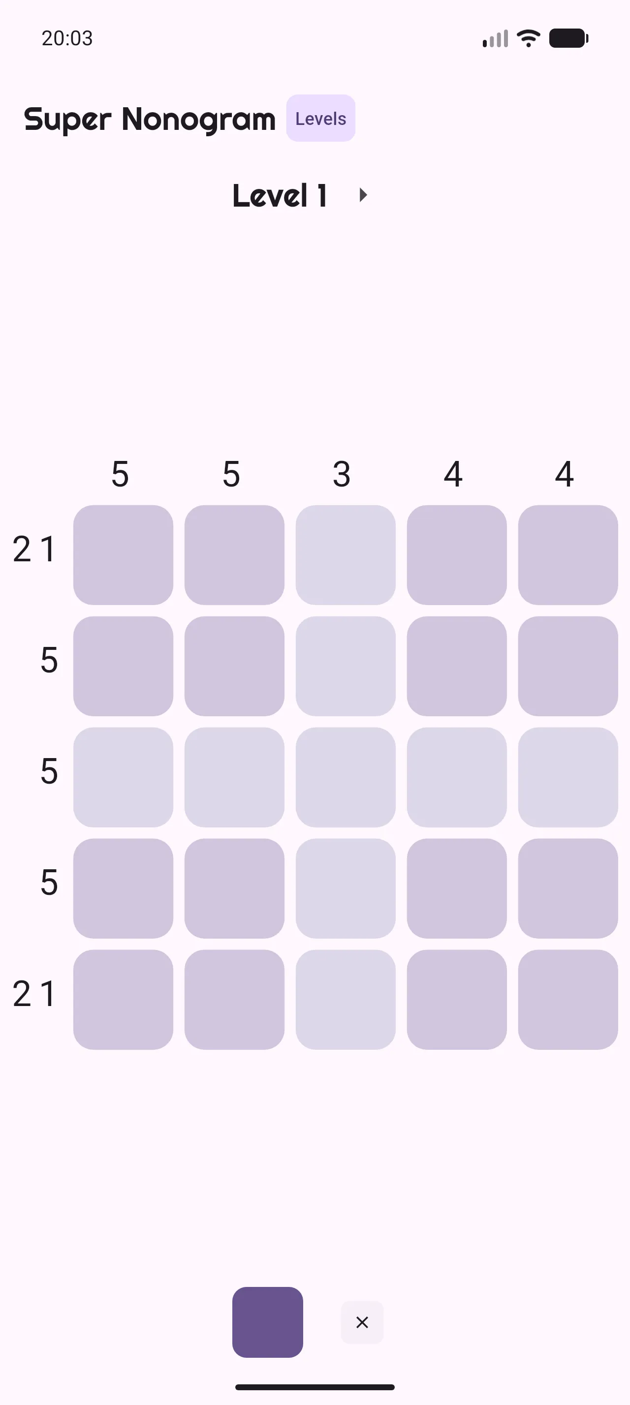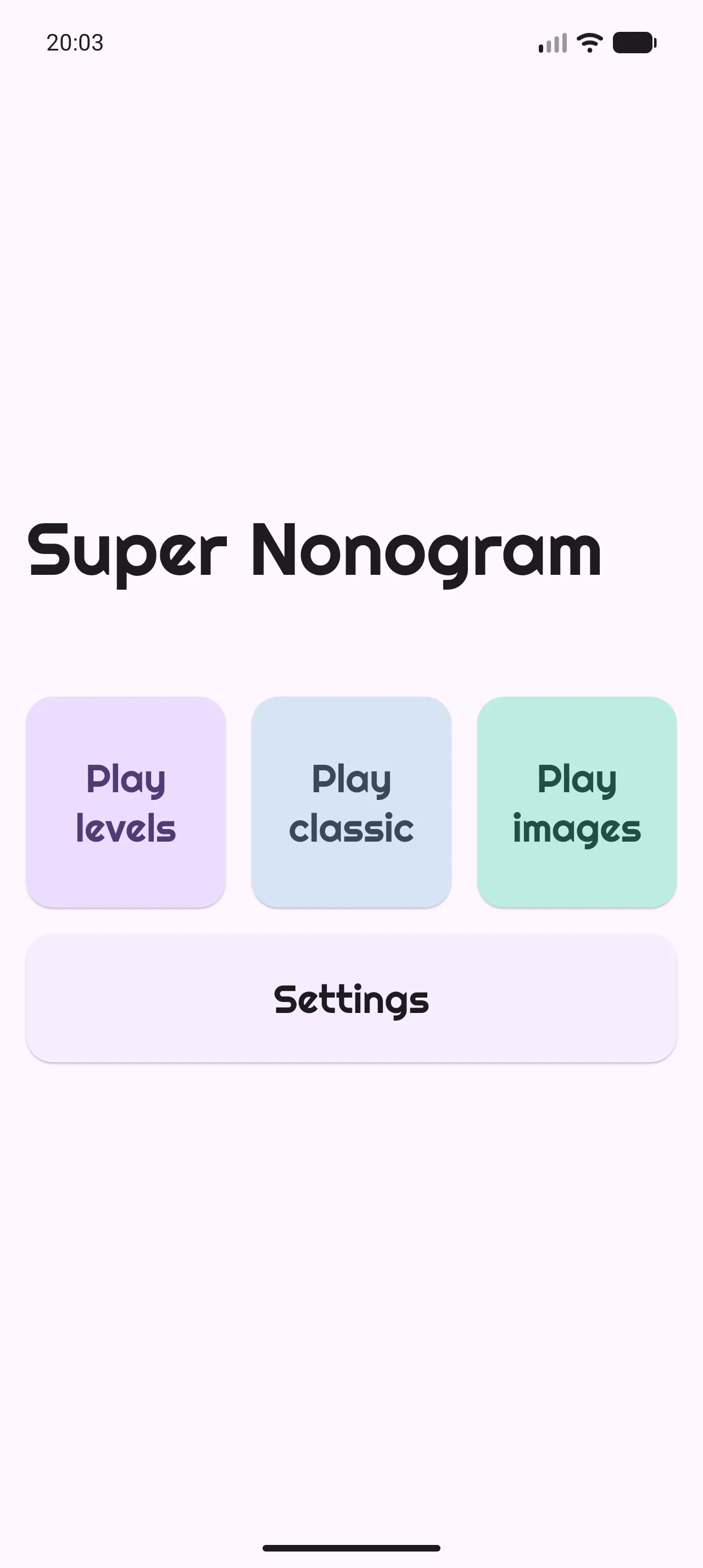 I later made Super Nonogram (available online) which is a rewrite of this app in Flutter with some new features.